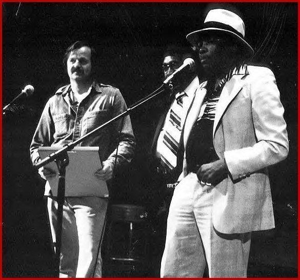 A. D. Winans presenting the late John Lee Hooker with his first music achievement award at California Music Hall, San Francisco, 1980.