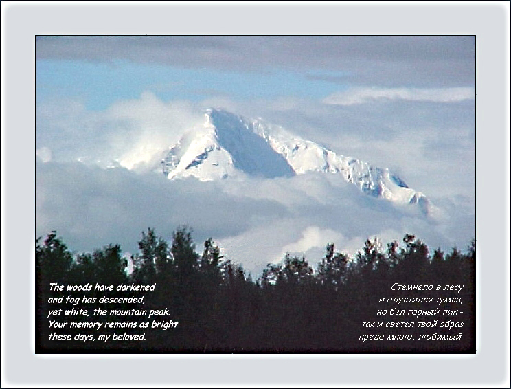 yet white, the mountain peak.