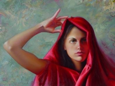 The Red Shawl painting by US painter Timothy C. Tyler, was